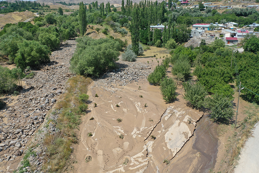 Kağızman Kaymakamı Okan Daştan ile DSİ 24. Bölge Müdürü Serdar Kotan sel bölgesinde incelemelerde bulundu.