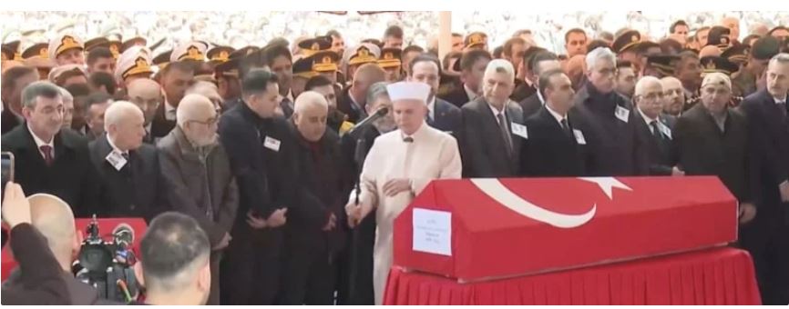 Törene MHP Genel Başkanı Devlet Bahçeli ile Cumhurbaşkanı Yardımcısı Cevdet Yılmaz da katıldı. Bakanların da cenaze töreninde olduğu görüldü.