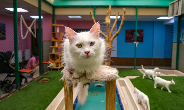 Van YYÜ bünyesinde kurulan "Kedi Villası"nda özenle korunan ve tüm bakımları yapılan Van kedileri, kente gelen binlerce yerli ve yabancı turist tarafından ziyaret ediliyor.