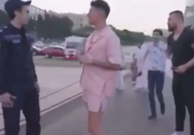 Görüntülere mini şortu ile yansıyan Kerimcan Durmaz Azerbaycan gezisinde şehitliğe girmek isterken güvenlik tarafından durduruldu. Güvenlik tarafından "giremezsiniz" ikazı alan Durmaz; "Aa neden giremiyoruz, sizden icazet alalım, kimi arayalım?" dedi.