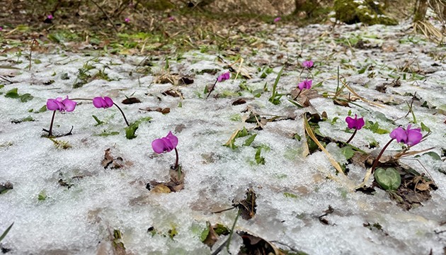 Kentin yüksek kesimlerinde kar yağışı etkili olurken, merkeze yakın ormanlık alanlarda ise havanın ısınmasıyla çiçekler açtı.