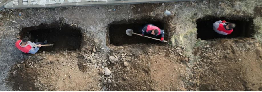 İş makineleri ile kazılan mezarlar, şubede görevli işçiler tarafından kazma ve küreklerle usulüne uygun hale getirildi.