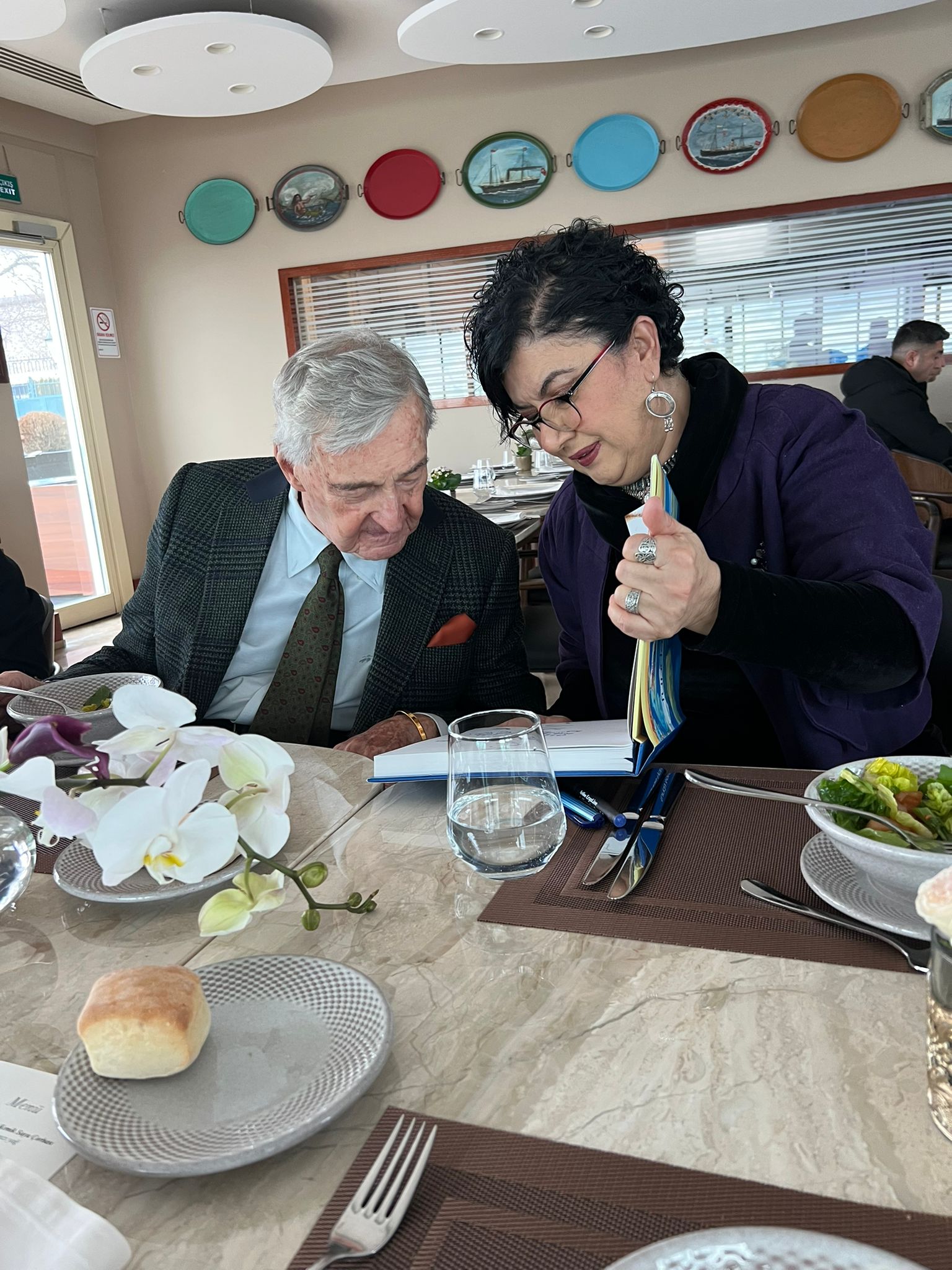 Ziyaret sırasında bir grup sanatçıyla da bir araya gelen Rahmi Koç, son dönemde eserleriyle öne çıkan Ressam Funda İyce Tuncel ile bir süre sohbet etti.