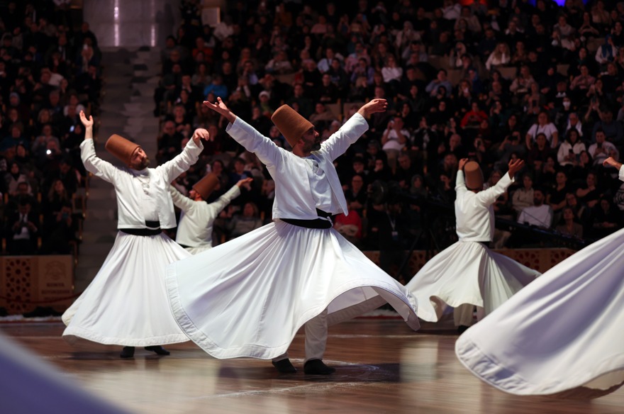 Davetlilerin ilgiyle izlediği sema, Mevlevi dervişi olarak kabul edilen semazenler tarafından gerçekleştirildi.