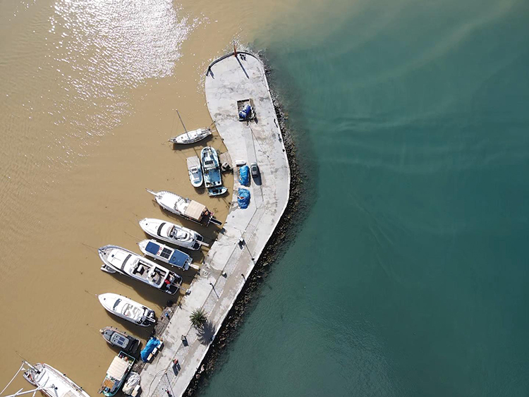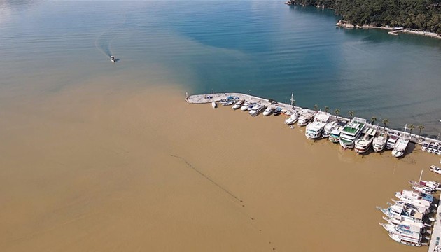 Buradan akan çamurlu su, denizin yüzeyini kahverengiye dönüştürdü.
