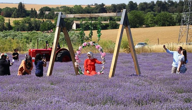 Kentteki lavanta tarlaları bayramda da İstanbul ve yakın illerden gelenleri ağırlıyor. Ziyaretçiler, göz alıcı mor ve eflatun renkli tarlalarda hazırlanan özel dekorlar önünde en güzel fotoğraf karesini yakalamaya çalışıyor.