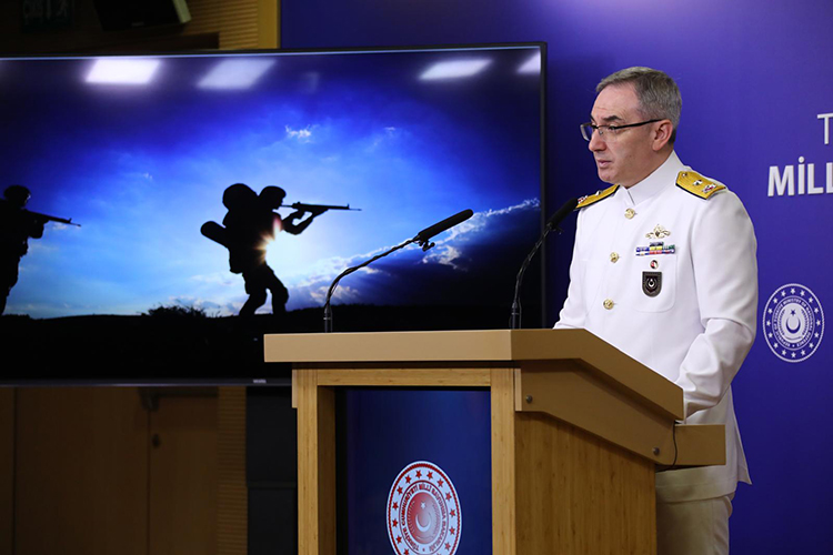 MSB Basın ve Halkla İlişkiler Müşaviri ve Bakanlık Sözcüsü Tuğamiral Zeki Aktürk, bakanlıkta düzenlenen haftalık basın bilgilendirme toplantısında konuştu.