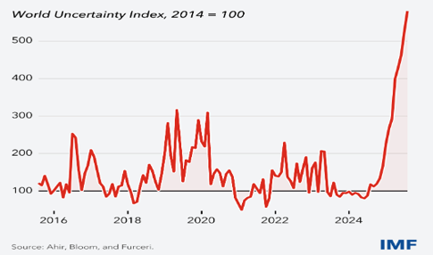 Aşağıdaki grafik dünya belirsizlik endeksindeki gelişmeyi gösteriyor.