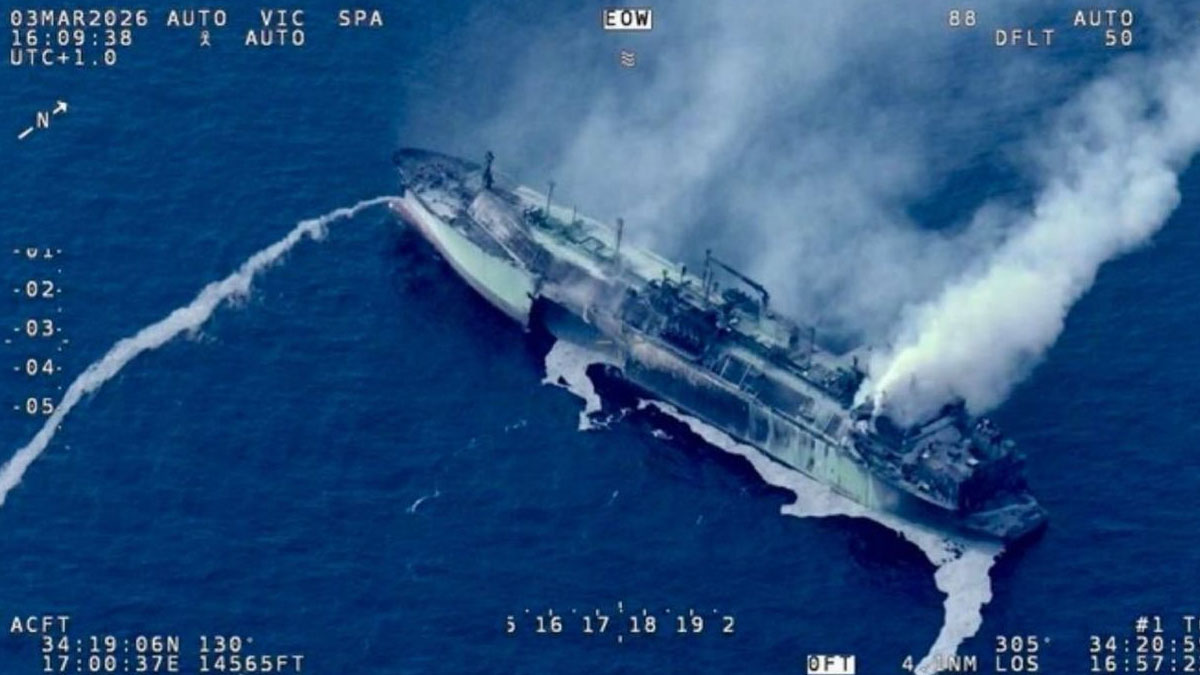Gündüz saatlerinde askeri keşif uçakları (veya İHA'lar) tarafından çekilen ve üzerinde koordinat/hedefleme (HUD) verileri bulunan fotoğraflar ise hasarın boyutunu kanıtlıyor. Tankerin sancak (sağ) tarafında kamikaze deniz aracının çarpması sonucu metrelerce genişliğinde devasa bir delik açıldığı, geminin hızla su aldığı ve içindeki gazın/yakıtın denize sızarak yoğun bir duman çıkardığı net bir şekilde görülüyor.