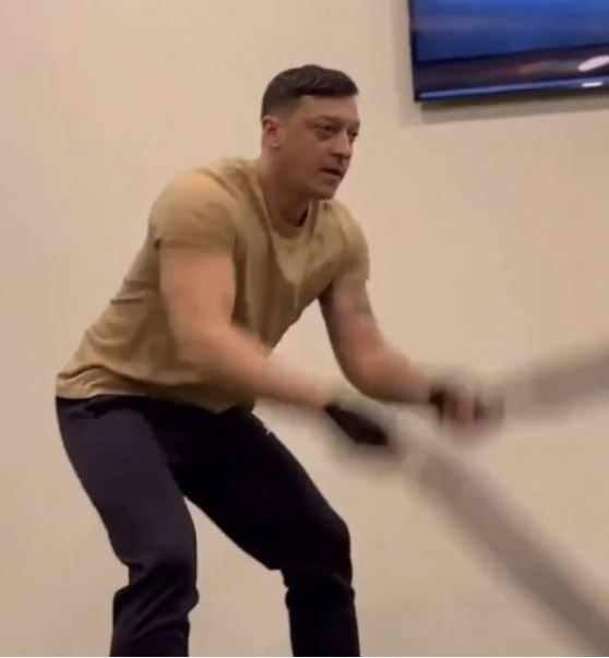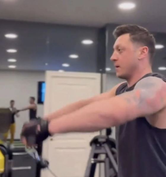 Geçmişteki zayıf görüntüsünün aksine vücudunun kalınlaştığı görünen Özil, çalışmalarına ara vermeden devam ediyor.