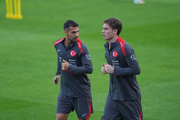 Riva'daki TFF Hasan Doğan Milli Takımlar Kamp ve Eğitim Tesisleri'nde 15 dakikası basına açık olan idmanda ay-yıldızlı ekip, ısınma koşuları sonrası çeşitli pas çalışmaları gerçekleştirdi.