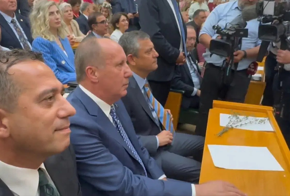 CHP grup toplantısının yapılacağı salona CHP Genel Başkanı Özgür Özel, Muharrem İnce ile birlikte geldi.