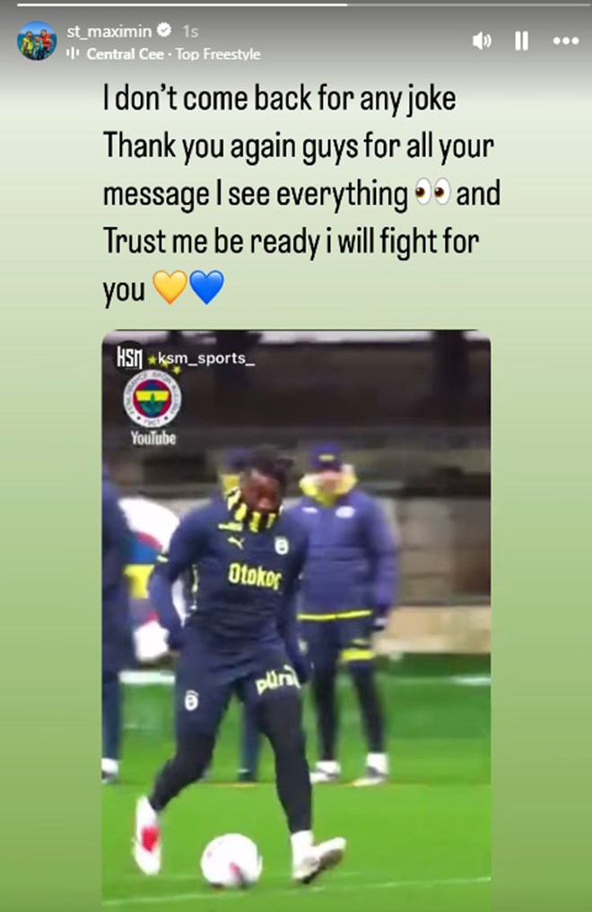 İdman görüntülerini sosyal medya hesabından paylaşan Saint-Maximin, Fenerbahçe taraftarına seslendi.