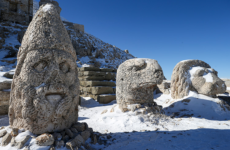 Kommagene Krallığı'na ait 50 metre yüksekliğinde, 150 metre çapındaki tümülüs ve dev heykellerin bulunduğu 2 bin 150 metre yükseklikteki Nemrut Dağı, yerli ve yabancıların beğenisini topluyor.