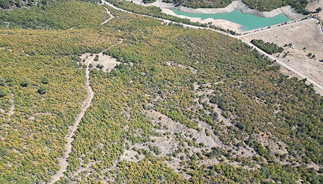 Aksu ilçesi Karağı Köyü bal ormanları ve Karağı göleti çevresinde de renk tonları eylül ayında daha da arttı.