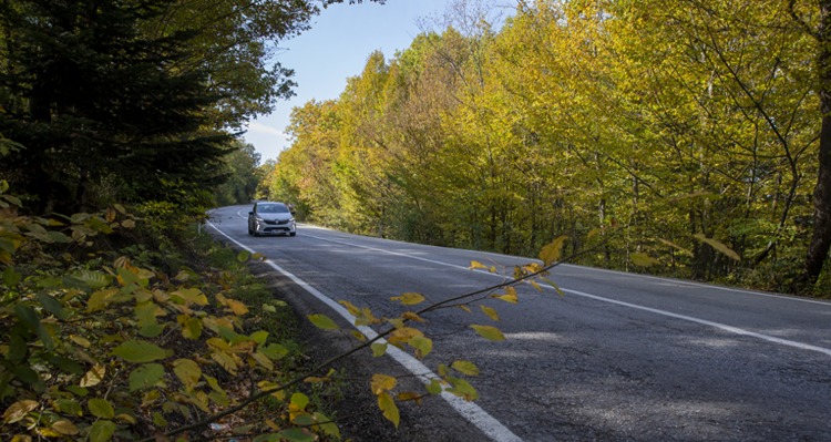 Tabiat parkına ulaşımı sağlayan kara yolunda, yeşil, sarı ve kahverenginin tonlarına bürünen ağaçlar güzel manzara oluşturuyor.