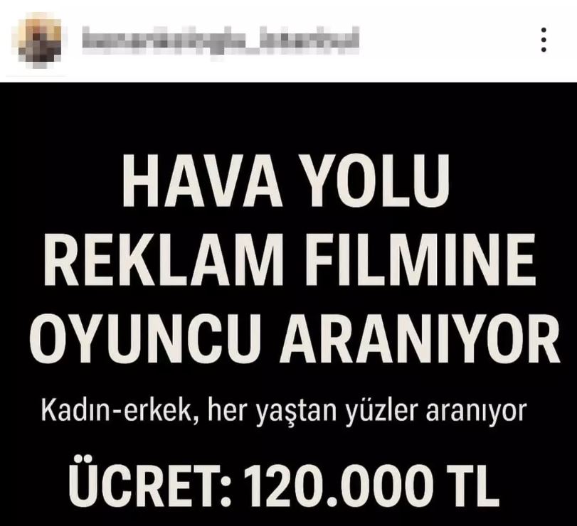 İstanbul’da sosyal medya üzerinden verilen "oyuncu aranıyor" ilanlarına başvuran kişilerin, yüksek ücret vaadiyle kandırılarak tek taraflı sözleşmeler imzalatıldı ve eğitim ücreti adı altında ödeme alındı. İddiaya göre, ilanlara başvuran kişiler WhatsApp üzerinden görüşmeye çağrıldı. Reklam filmi ve dizi projelerinde rol verileceği, bölüm başı 100 ila 140 bin lira kazanacakları söylendi.