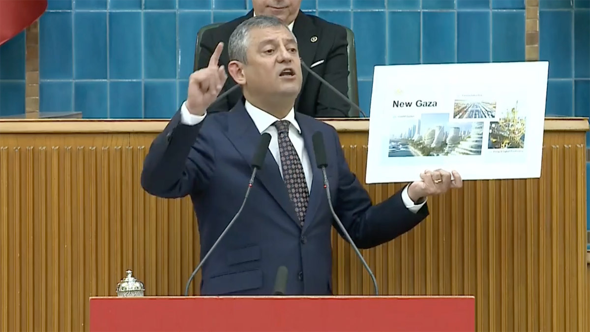 CHP lideri Özgür Özel, partisinin TBMM'deki haftalık grup toplantısında gündeme ilişkin konuştu. Filistin'de İsrail'in saldırıları nedeniyle 71 bin kişinin katledildiğini hatırlatan Özel, Cumhurbaşkanı Recep Tayyip Erdoğan'ın ABD Başkanı Donald Trump'ın duyurduğu Gazze Barış Planı'nı kabul ettiğini belirterek "Trump Gazze Barış Planı diye bir plan ortaya attı. 62 ülkeye çağrı yaptı, 41'i daveti kabul etmedi. 21'i kabul etti. Erdoğan tatil köyü yapılacak olan bu işgal planında yer almayı kabul etti. Trump başkanlığında aklı başında hiçbir ülkenin katılmadığı Trump'a boyun eğenlerin dizildiği yere bizimki de dizildi. O kurulun içine Erdoğan'ın yan koltuğuna Netanyahu oturdu. Erdoğan 'Gazze kasabı' diyordu. Burada o kasap dükkan açıyor sen de alışveriş yaparsın" ifadelerini kullandı.
