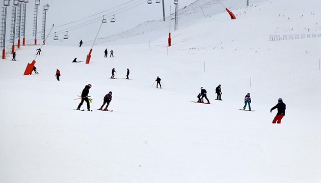 Hafta sonlarının yanı sıra hafta içinde de yoğunluğun görüldüğü Palandöken'in pistlerinde, yerli ve yabancı turistler kayak ve snowboard yaparak eğlenceli vakit geçiriyor.