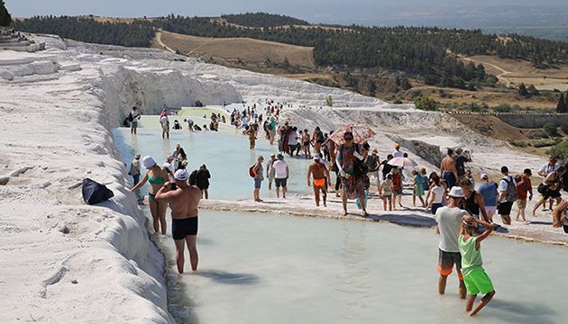 Pamukkale'de, haziranda günlük ortalama ziyaretçi sayısının 12 binin üzerinde olduğu, temmuz da ise bu sayının aşılmasının beklendiği öğrenildi.