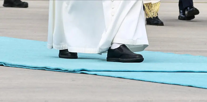 Papa'nın bindiği uçağa, devlet arması yapıştırılmıştı. Papa Leo, sade kıyafeti ve siyah ayakkabılarıyla dikkat çekti. Leo, kırmızı ayakkabı tercih etmiyor.
