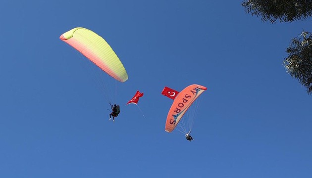 Etkinlikler kapsamında Kaş Havacılık Spor Kulübü üyesi 50 paraşütçü, Türk bayraklarıyla gruplar halinde atlayış yaptı. Paraşütçülerden birinin atlayış sırasında gökyüzünde dalgalandırdığı üzerinde Atatürk portresi bulunan 20 metrekarelik Türk bayrağı dikkati çekti.