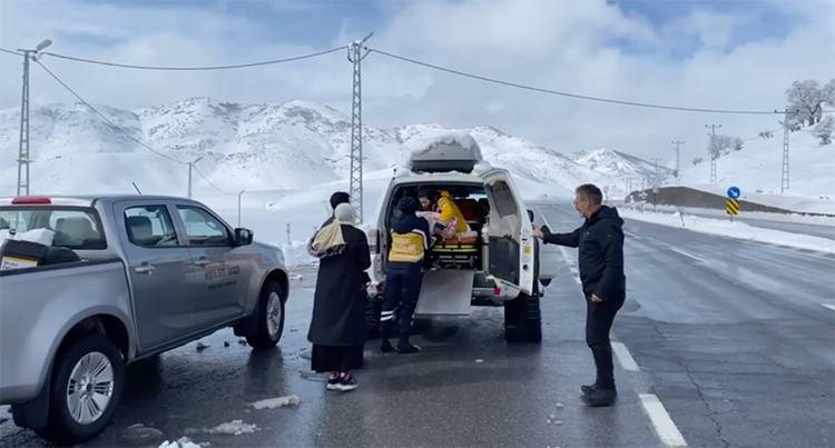 Bunun üzerine köye paletli ambulans yönlendirildi.