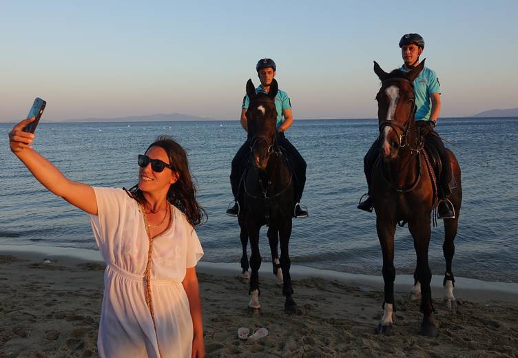 Atlı birliğin ilgi çektiğini belirten Özkan, "Jandarmanın sahillerde bu şekilde gezmesiyle kendimizi güvende hissediyoruz." dedi.