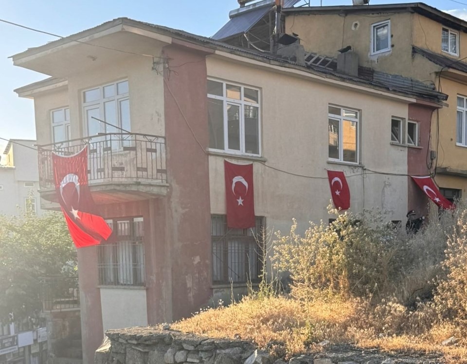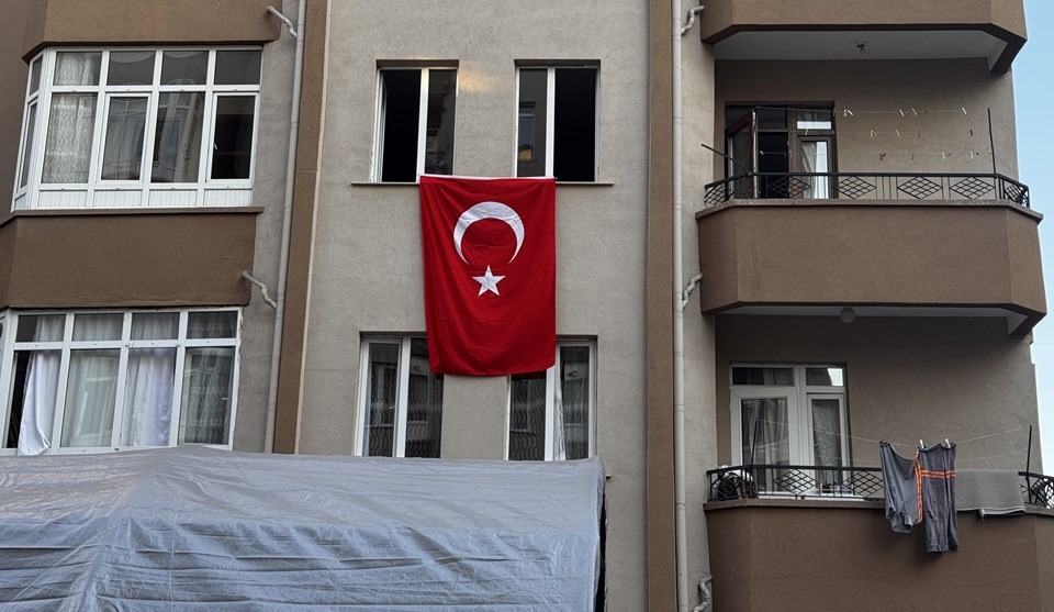 Ailenin yaşadığı binaya Türk bayrağı asıldı.