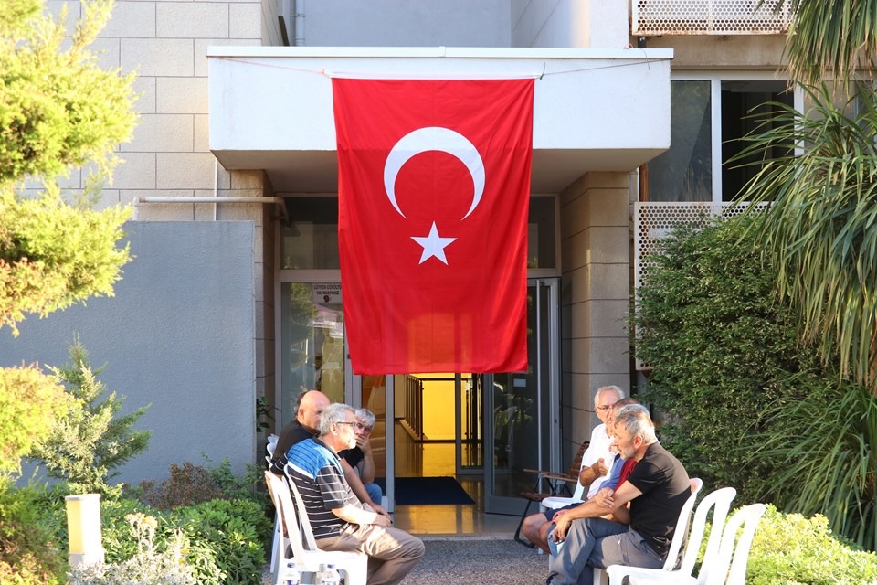 Ailenin yaşadığı daireye ve siteye Türk bayrakları asıldı.