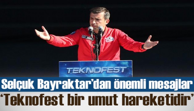 "TEKNOFEST, hayallerinizin hayat bulduğu, dünyayı değiştiren projelerin doğduğu yer olmaya devam edecek. Daha adil, eşitlikçi, müreffeh ve güvenli bir dünya, sizlerin omzunda yükselecek. İyiliğin hüküm sürdüğü, daha merhametli, hür, adil bir dünyayı sizler, güneş yüzlü Türk gençleri inşa edecek. Genç kardeşlerim, sizlere çağrımı bir kez daha tekrarlıyorum. Hayallerinizle, heyecanınızla, aklınızla, fikrinizle gelin, özgürce gelin. Eleştirilerinizle, itirazlarınızla, yüreğinizin sıcaklığıyla, sevgiyle, memleket aşkınızla gelin. Gelin bu gençlik hareketine bir omuz verin, el ele tutuşalım, dünyayı değiştirelim. Gelecek sizsiniz, siz geleceksiniz."