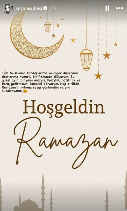 Şubaşı, 2.8 milyon takipçisi bulunan Instagram hesabının hikayeler bölümünden Ramazan'la ilgili bir paylaşım yaptı. Subaşı, paylaşımında şunları ifade etti: