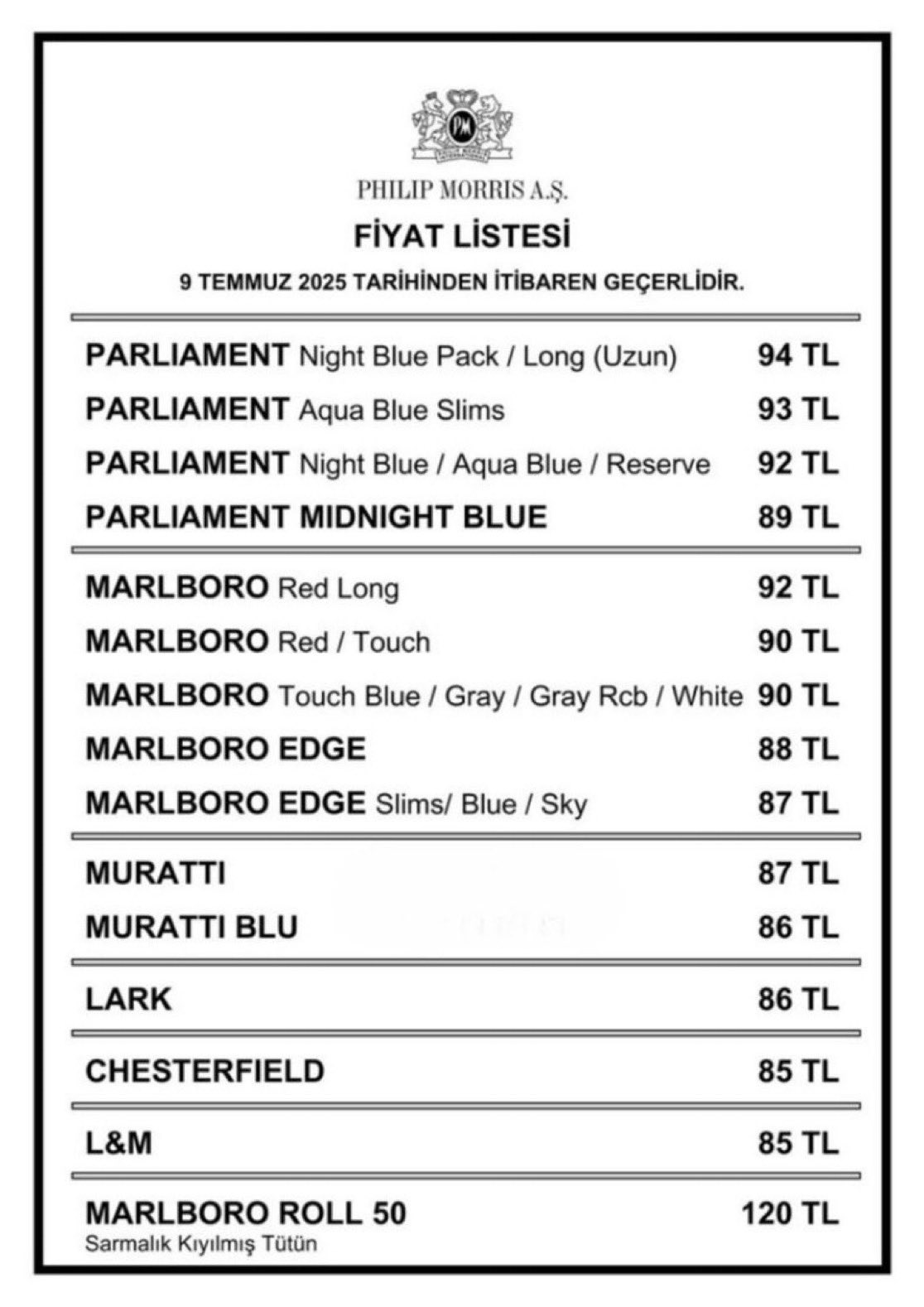 Philip Morris sigara grubuna zam yapıldı. Yeni zamlarla birlikte Parliament ve Marlboro serisi sigaraların fiyatları 90 TL'yi aştı.