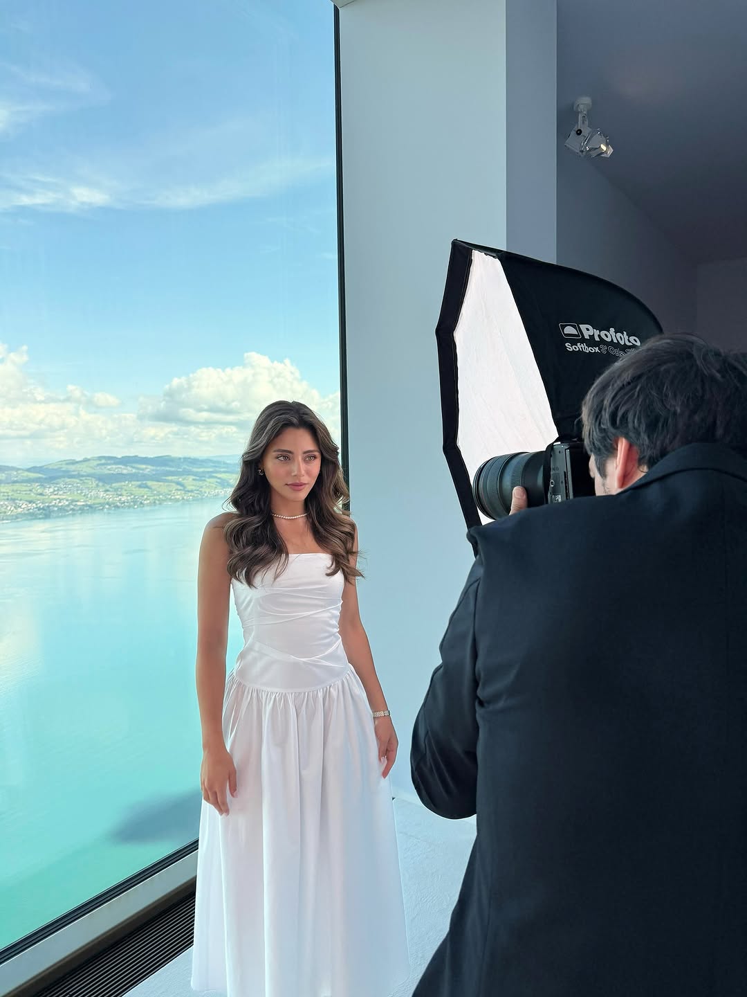 Güzel oyuncu, son olarak İsviçre'ye gitmek üzere bir reklam çekimi için seyahate çıktı ve burada çektiği göz alıcı pozları takipçileriyle paylaştı.