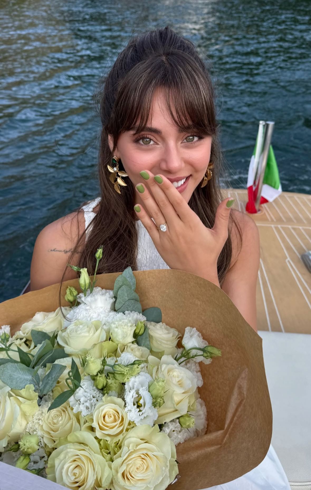 Ata Ayyıldız, sevgilisi Sıla Türkoğlu'na teknede sürpriz yaptı, evlilik teklifinde bulundu. Ardından kendisine "Evet" diyen oyuncuyu yüzüğü ve çiçeğiyle paylaştı.