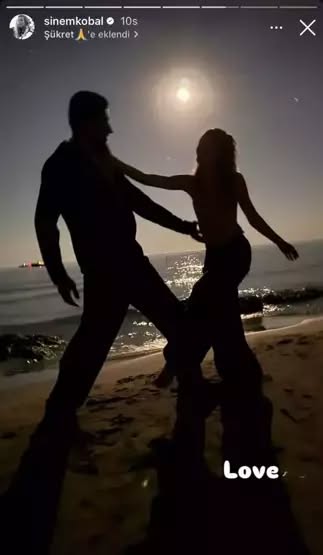 Şu sıralar tatilde olan çiftten yeni kare geldi. İki ünlü oyuncu, sahilde eğlendikleri anları sosyal medya hesaplarından paylaştı. Kobal, bu paylaşımına “Love” notunu düştü.