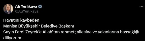 - İçişleri Bakanı Ali Yerlikaya: