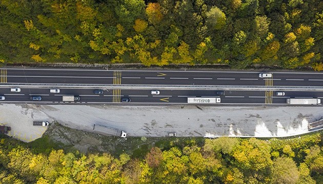 Sürücüler, kara yolunun Bolu kesiminde doğanın oluşturduğu manzara eşliğinde yolculuk yapıyor.