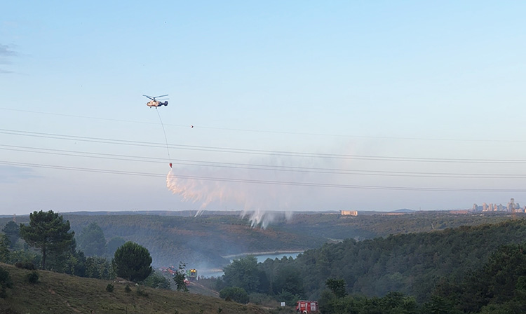 Yangın söndürme çalışmalarında bir helikopter de görev aldı.