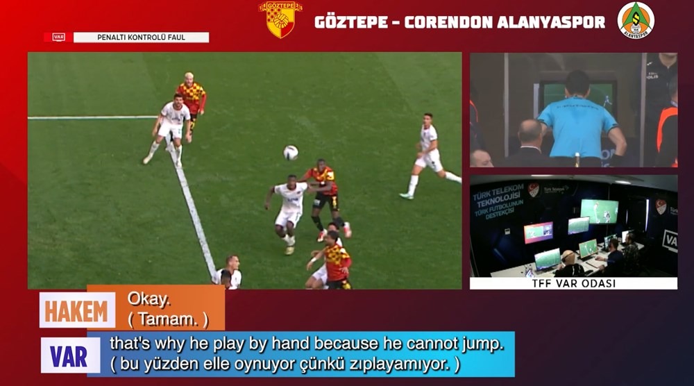 Konyaspor - Bodrum FK mücadelesinin 43. dakikasında hakem Ümit Öztürk, potansiyel penaltı incelemesi için VAR’dan uyarı aldı. Kenara gelerek pozisyonu izleyen Öztürk, Yusuf Erdoğan’ın topa elle temasını belirleyerek penaltı noktasını gösterdi.