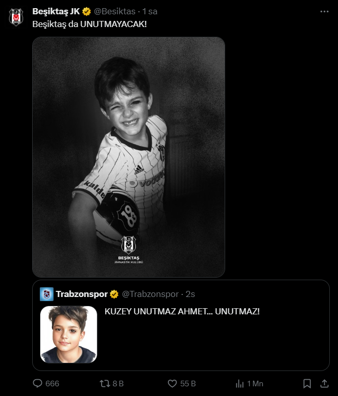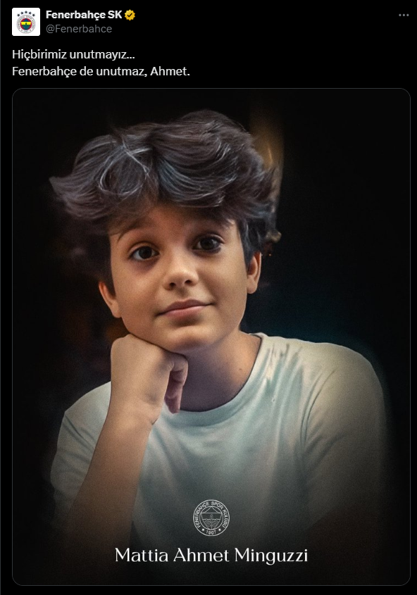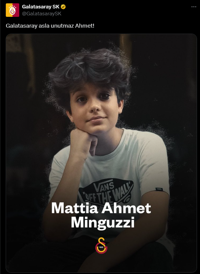 Trabzonspor, Mattia Ahmet Minguzzi için yaptığı paylaşımda "KUZEY UNUTMAZ AHMET... UNUTMAZ!" dedi.