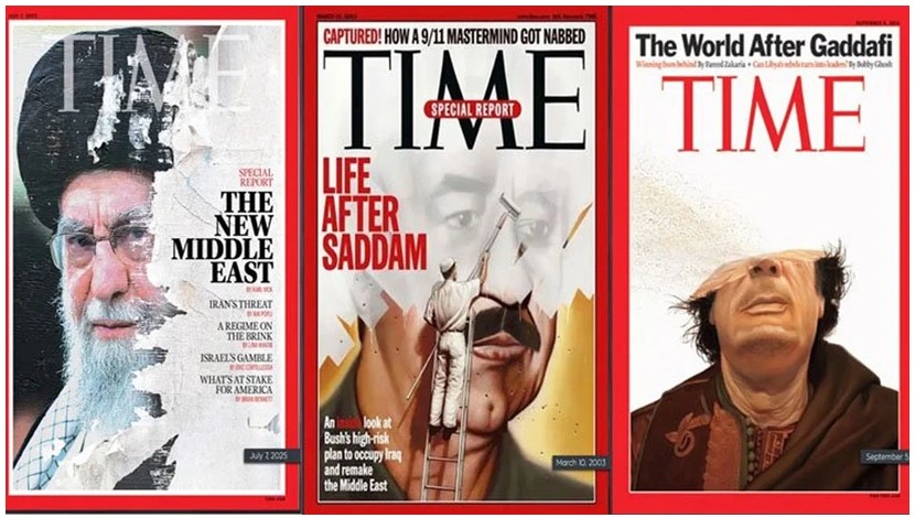 Öte yandan 5 Eylül 2011 tarihli TIME dergisi kapağında ise Libya'nın devrik lideri Muammer Kaddafi'nin yüzünün yarısının silinmiş şekilde olduğu fotoğrafı kullanılmış ve "Kaddafi'den Sonra Dünya" başlığı atılmıştı. Derginin çıkmasından kısa süre sonra Kaddafi öldürülmüştü.