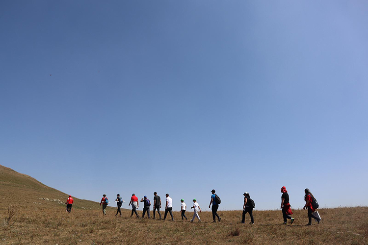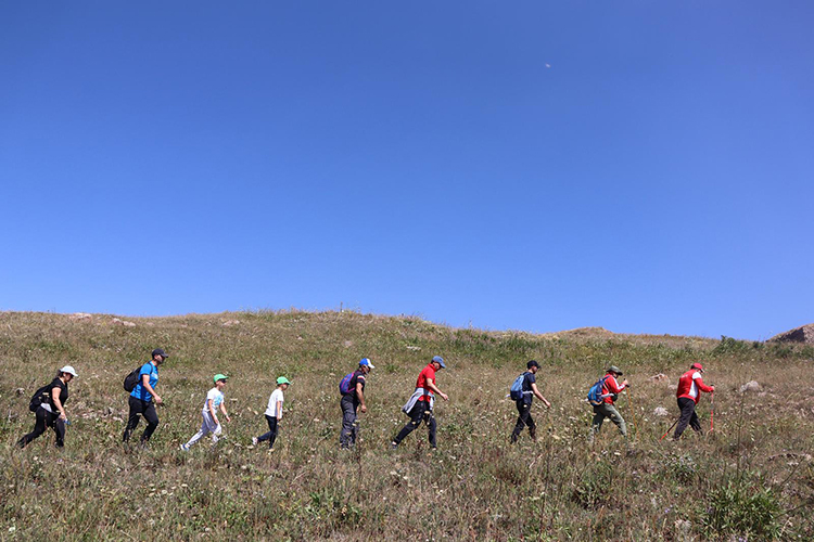 Doğa ve tarihin birleştiği manzara eşliğinde bir araya gelen genç ve çocuklardan oluşan grup, 2 bin 143 rakımlı zirveye yapılan 7 kilometrelik yürüyüşü tamamladı.