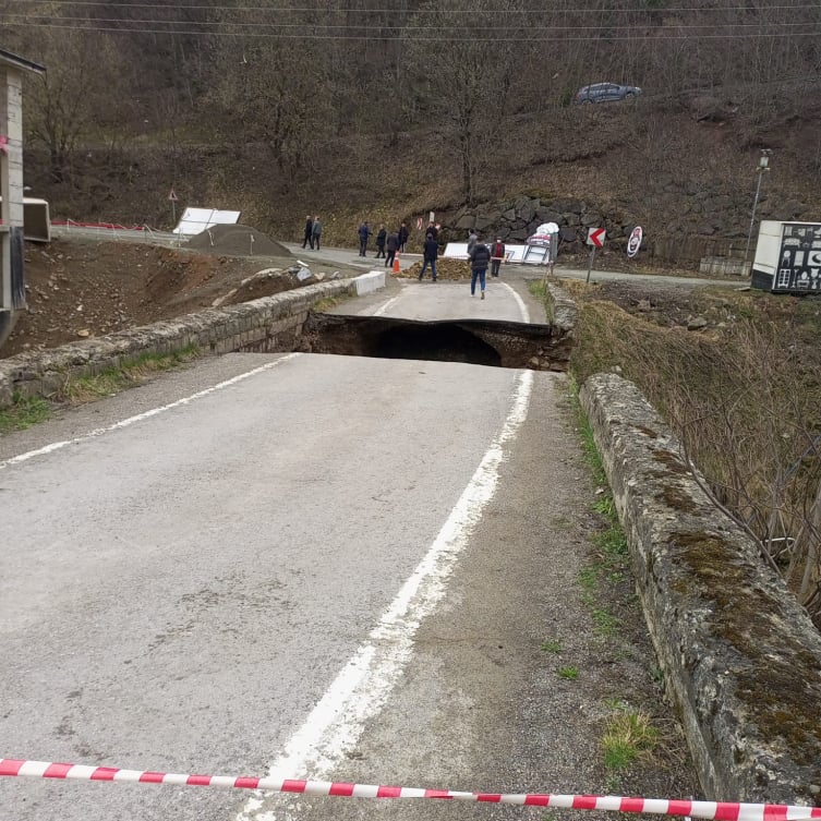 Trabzon'un Maçka ilçesinde, son günlerde etkili olan yoğun yağışlar, tarihi taş köprüde büyük hasara yol açtı. Yağışın ardından köprünün orta kısmında büyük bir çökme yaşandı. Olayın hemen ardından bölgeye AFAD ve belediye ekipleri sevk edilirken, köprünün güvenliği için çevre güvenliği de sağlandı.
