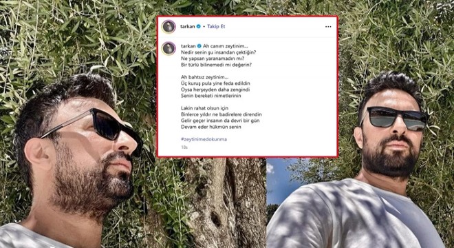 Tarkan’ın zeytinlikler için yazdığı ve sosyal medya sayfası Instagram’da paylaştığı şiiri şu şekilde;