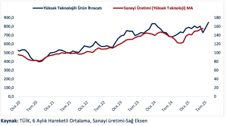 Böylelikle yüksek ve orta-yüksek teknoloji ürünlerinin imalat sanayi ihracatı içindeki payı 2024 yılı Ocak-Ağustos döneminde yüzde 40,1 iken 2025 yılında yüzde 42,5 seviyesine yükselmiştir" ifadelerine yer verdi.