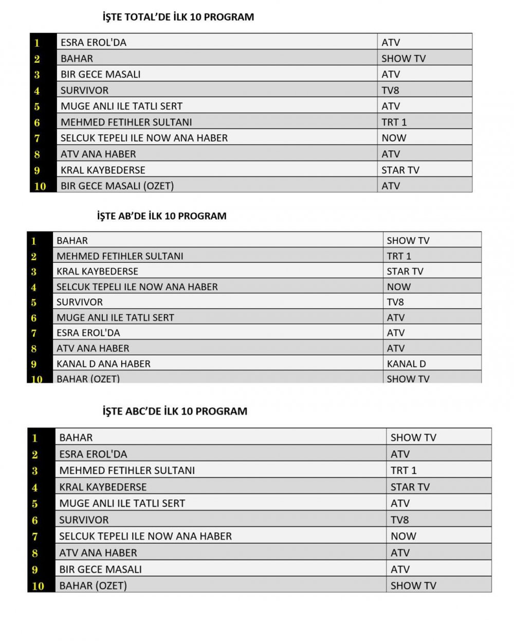 1. Esra Erol’da – ATV