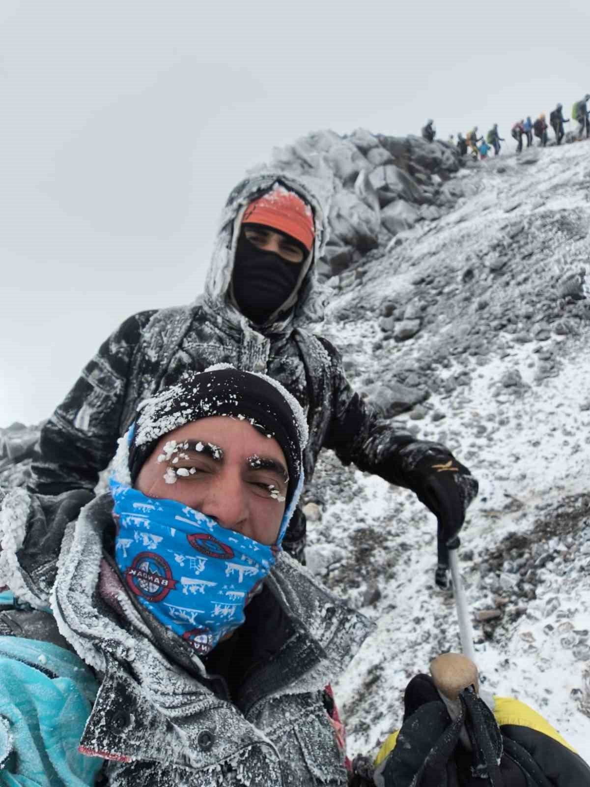 Türkiye’nin en yüksek noktası olan 5137 rakımlı Ağrı Dağı’nda zirve tırmanışı gerçekleştiren bir grup dağcı, hava sıcaklığının eksi 35 dereceye kadar düştüğü bölgede zorlu doğa şartlarıyla mücadele etti.