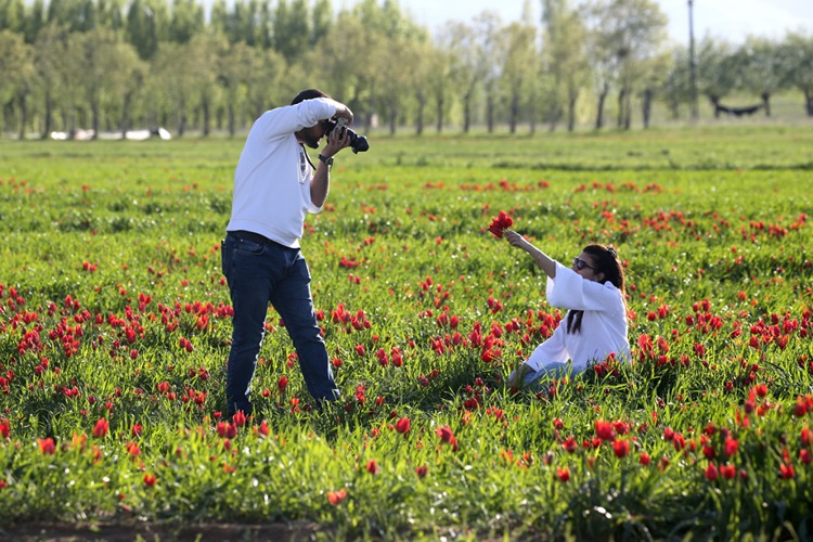 Merkeze 17 kilometre uzaklıkta bulunan Laleli köyündeki ovaya gelen doğaseverler ve fotoğraf tutkunları, doğal olarak yeşeren laleleri cep telefonları ve fotoğraf makineleriyle görüntülemeye çalıştı.