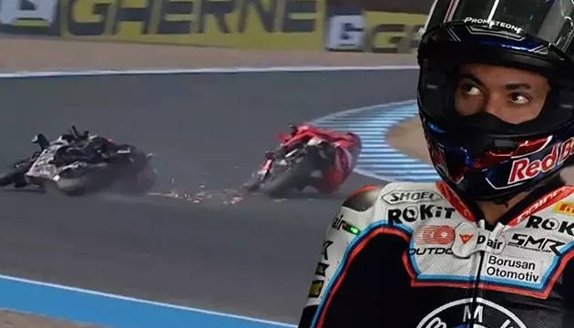 Milli motosikletçi, ilk turda şampiyonluk için en yakın rakibi Aruba Ducati takımından İtalyan Nicolo Bulega'yı geçerek yarış liderliğini aldığı anlardan sonra rakibi motosikletiyle Toprak'a çarptı. Toprak, motorunun düşmesi sonucu pist dışında kaldı.